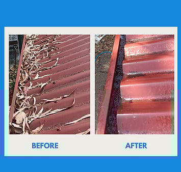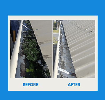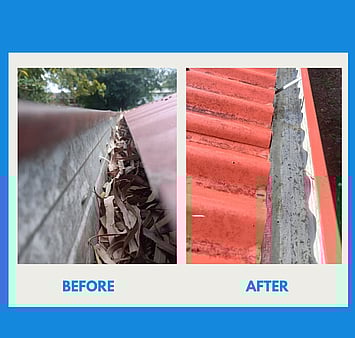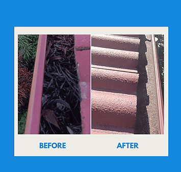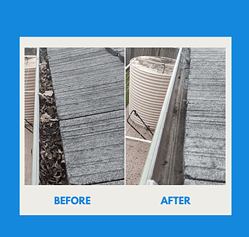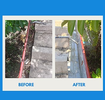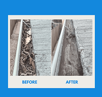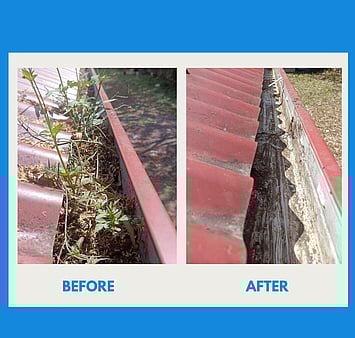 Before: Clogged gutters are filled with leaves, twigs, and debris, causing water to overflow. This can lead to roof damage, mold growth, and foundation issues, costing you more in repairs.